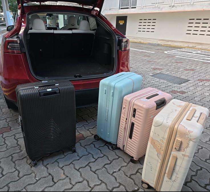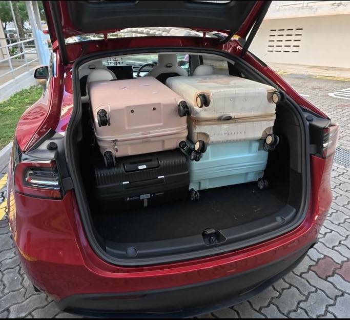 Utilize the large boot space at the back of an EV-Tesla Y. Put up to 4 large luggage and 2 small luggage in the boot. Amazed by the AutoFrunk of the vehicle. Ample leg space even if you have other bags of purchases placed at your feet.